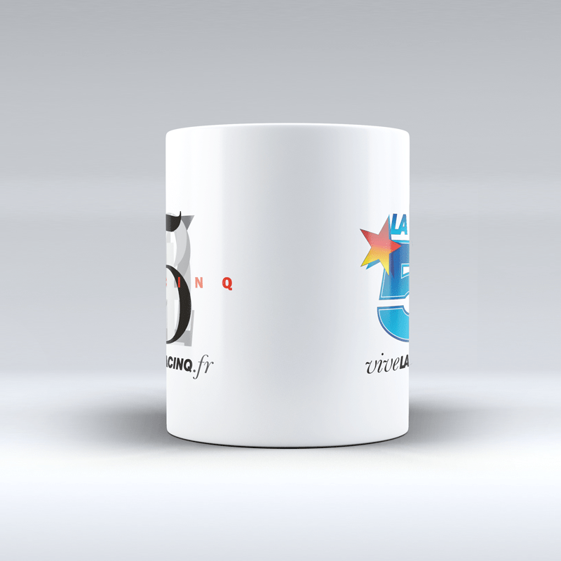 Mug Blanc Contenance 325 ml – Impression en sublimation des 2 Logos de La Cinq Recto/Verso – Haute tenue Lave-vaisselle & Micro-ondes.