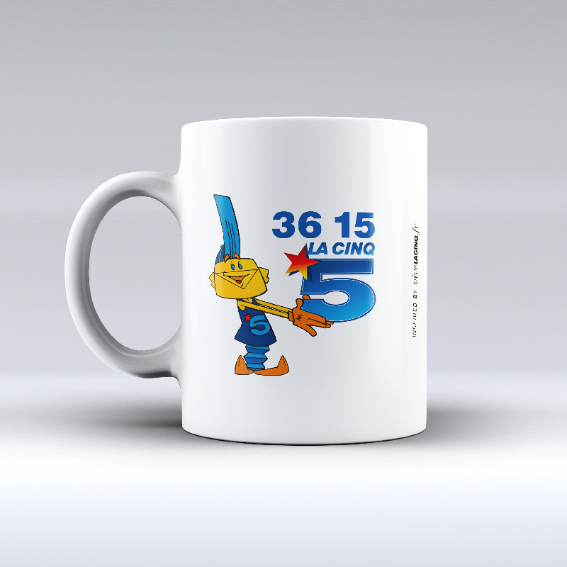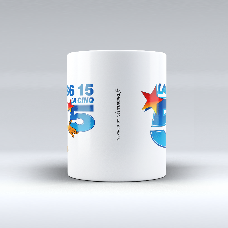 Mug blanc 325 ml – Impression recto “3615 La Cinq” et Logo La Cinq au verso.